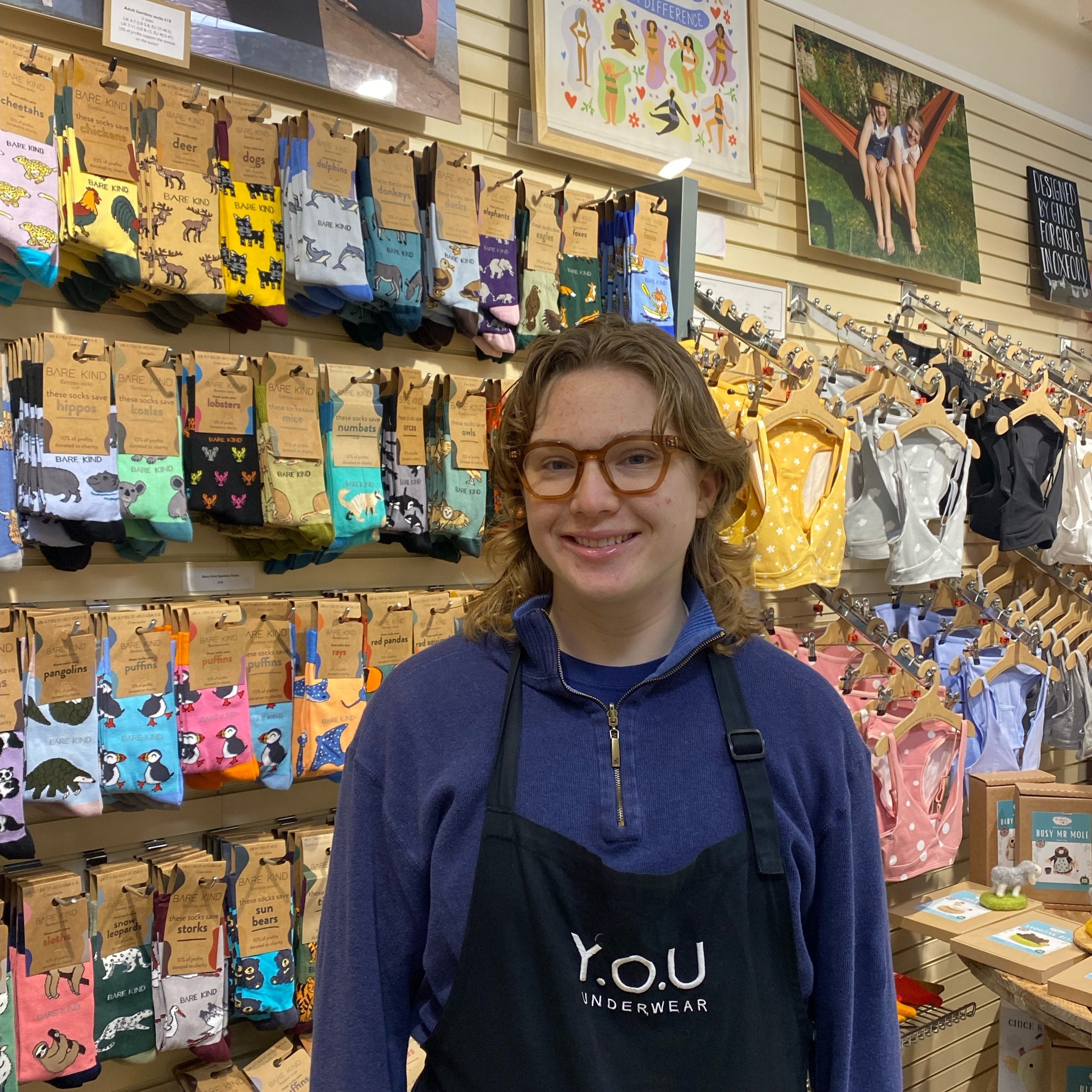 When she’s not busy brightening everyone’s day or playing badminton, Fiona is found helping to stock our Bare Kind socks every Tuesday :)