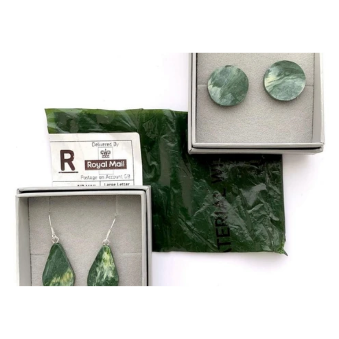 To combat waste, we partnered with London-based YagoEco to turn our old mailing bags into beautiful green and cream earrings that you can buy on our site.